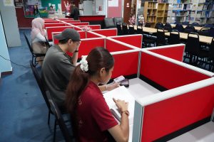 Meja belajar individu disediakan **(Perpustakaan Kampus Induk Sembulan Sahaja).